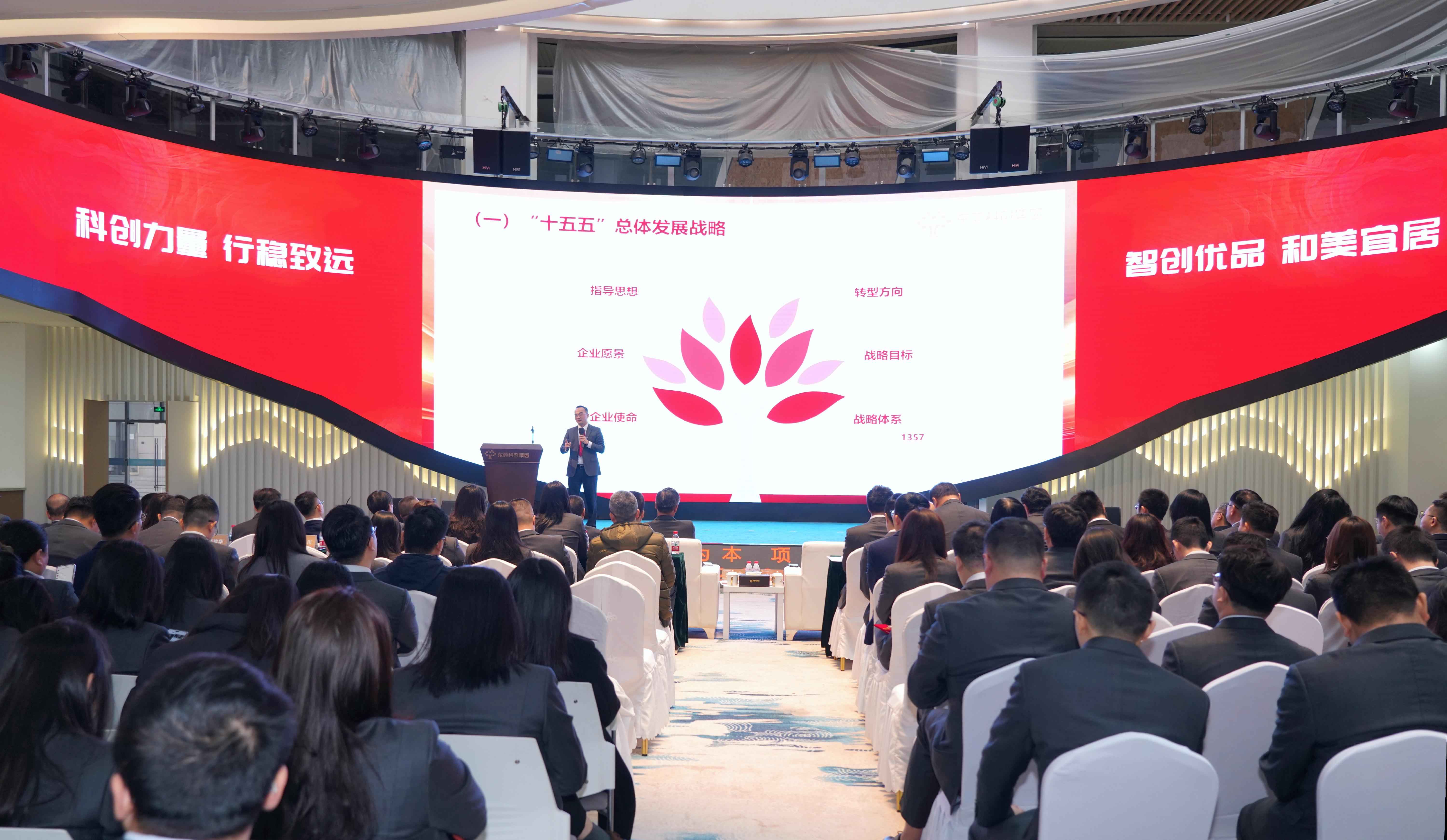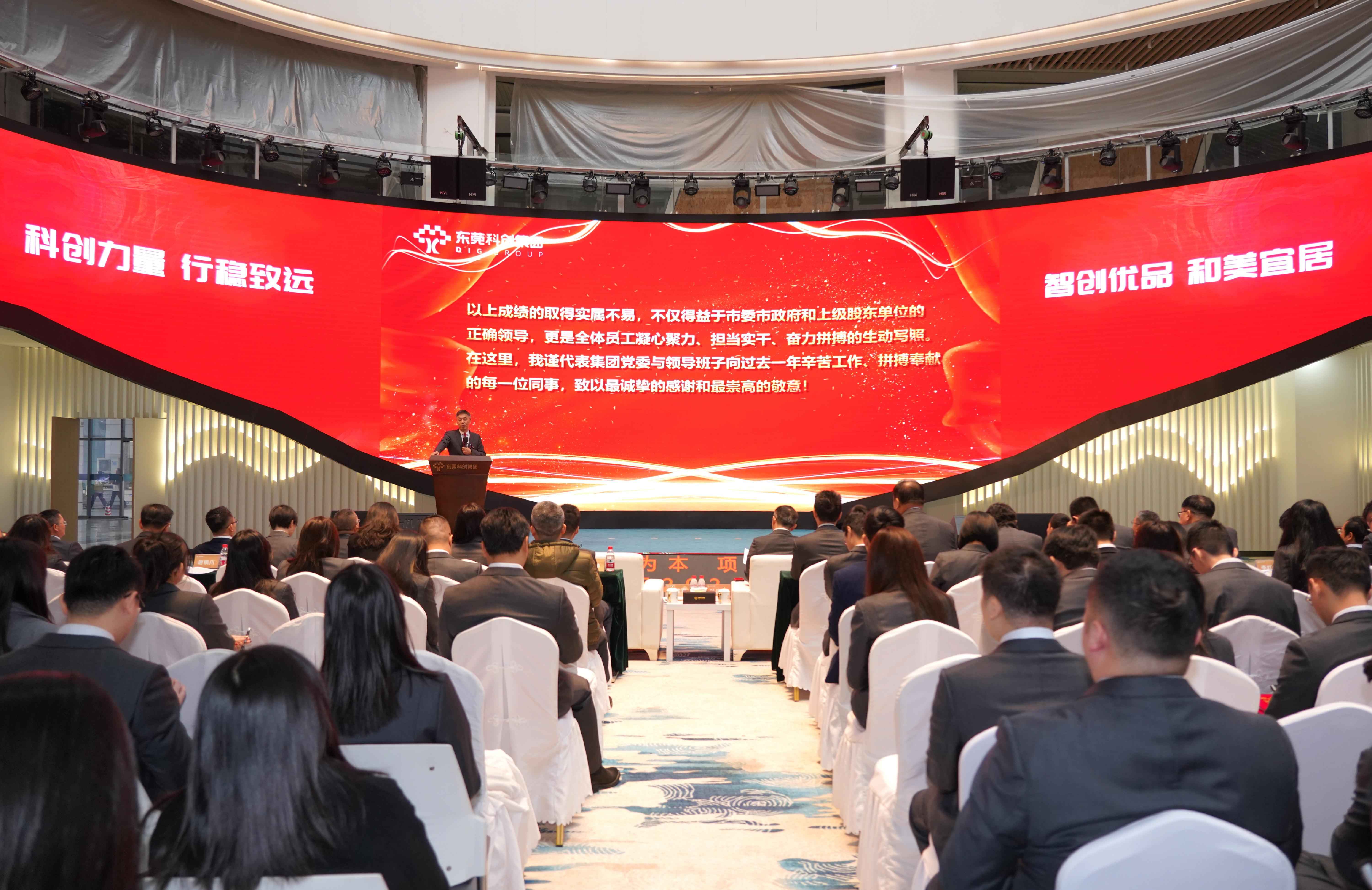 叶庆祥作了题为《产业为本 项目为王 全力推动科技创新与产业创新深度融合 为建设“智创优品 和美宜居”现代化新东莞贡献科创力量》的工作报告,详细阐述了集团“十五五”总体发展战略和发展目标,并对集团2026年工作进行了系统部署。他指出,站在改革发展新起点上,集团上下要坚持以习近平新时代中国特色社会主义思想为指导,深入学习贯彻党的二十大和二十届历次全会精神,立足集团发展新方位新目标新使命,紧紧围绕市委市政府各项工作部署,从五个方面持续发力:一是深耕本土产业,打造科技企业投资主力军;二是深耕本土生态,打造科技企业孵化主阵地;三是深耕本土服务,打造科技金融服务主窗口;四是深化内部治理,全面提升核心竞争新优势;五是深化强基固本,夯实国有企业发展压舱石。要坚定不移做强主业、做优生态、做大平台,坚持产业为本、项目为王,加速推动科技创新与产业创新深度融合,为建设“智创优品 和美宜居”的现代化新东莞贡献科创力量,以新担当新作为奋力谱写高质量发展新篇章。
